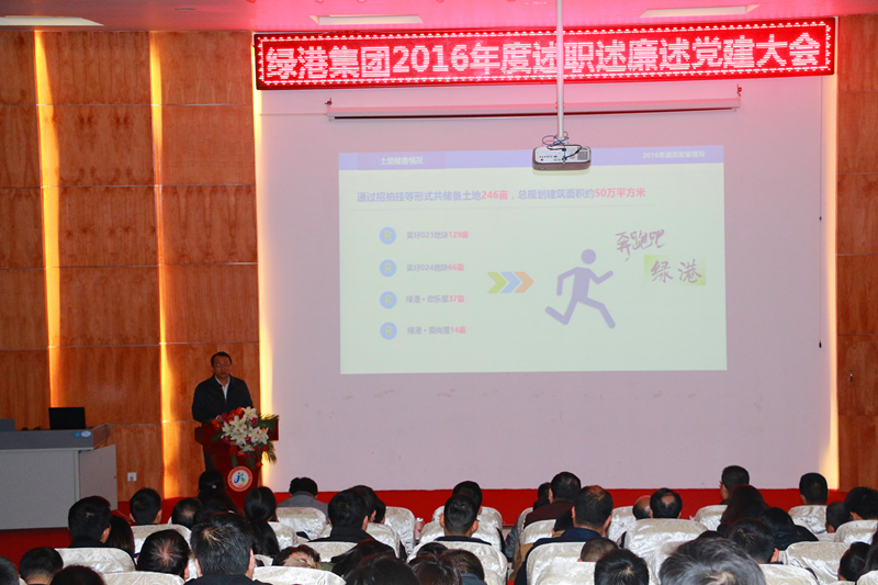 2017年1月14日,綠港集團(tuán)召開2016年度述職述廉述黨建工作會(huì)議,集團(tuán)全體領(lǐng)導(dǎo)班子、集團(tuán)總部全體員工及子公司中層干部、職工代表共150余人參加了大會(huì),經(jīng)開區(qū)紀(jì)工委派駐國(guó)有公司紀(jì)檢組組長(zhǎng)李云岳,黨群工作局組織科科長(zhǎng)向國(guó)澤出席會(huì)議。