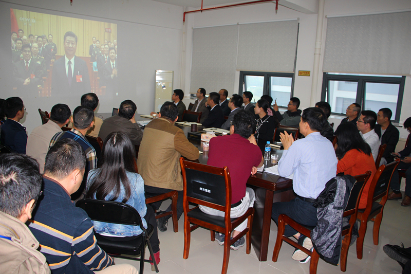 金秋十月,南國綠城花正艷。10月18日,黨的十九大在北京勝利開幕。當(dāng)日上午9時(shí),綠港集團(tuán)黨委組織集團(tuán)公司領(lǐng)導(dǎo)班子全體成員、董事長助理、總經(jīng)理助理,各部門、各子公司負(fù)責(zé)人及公司全體黨員,在麗匯大廈415會議室集中收看中國共產(chǎn)黨第十九次全國代表大會開幕會直播盛況。全體與會人員懷著無比激動的心情,聚精會神,靜靜聆聽,認(rèn)真記錄,不時(shí)爆發(fā)出熱烈的掌聲!在長達(dá)三個(gè)半小時(shí)的收看過程中,整個(gè)會場始終保持莊嚴(yán)、肅穆、緊張、熱烈的良好氛圍。