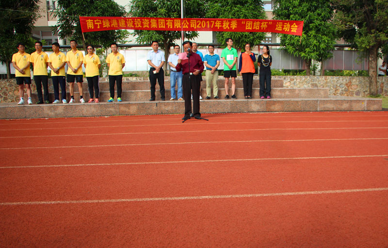 上午9時(shí),運(yùn)動(dòng)會(huì)開幕式準(zhǔn)時(shí)開場(chǎng)。伴隨著《運(yùn)動(dòng)員進(jìn)行曲》,來(lái)自綠港集團(tuán)總部及下屬子公司、各受邀平臺(tái)公司的8支代表隊(duì)120名運(yùn)動(dòng)員們邁著矯健的步伐列隊(duì)入場(chǎng)。隨后,綠港集團(tuán)9名青春亮麗的“運(yùn)動(dòng)寶貝”閃亮登場(chǎng),跳起激情四射的啦啦操,將活動(dòng)的氛圍推向了高潮。運(yùn)動(dòng)員代表、裁判員分別宣誓,綠港集團(tuán)董事長(zhǎng)、總經(jīng)理龔國(guó)強(qiáng)致開幕詞。隨后廖勇副主任作了熱情洋溢的講話,他要求各參賽隊(duì)要精心組織,嚴(yán)守紀(jì)律,賽出友誼、風(fēng)格和水平。最后,經(jīng)開區(qū)黨工委副書記覃傳財(cái)代表黨工委、管委會(huì)對(duì)運(yùn)動(dòng)會(huì)的召開表示祝賀,他希望四家平臺(tái)公司干部職工凝心聚力,以兄弟般的感情,在十九大精神的引領(lǐng)下,為經(jīng)開區(qū)的發(fā)展譜寫新輝煌!在全體運(yùn)動(dòng)員的熱切期待下,覃傳財(cái)副書記宣布運(yùn)動(dòng)會(huì)開幕,充滿激情與挑戰(zhàn)的運(yùn)動(dòng)會(huì)正式拉開帷幕。