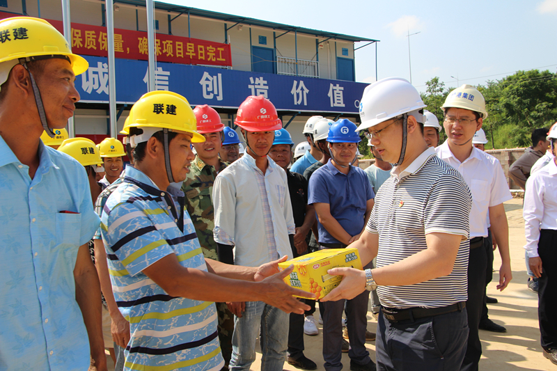 綠港集團黨委書記、董事長、總經(jīng)理龔國強給項目一線人員送清涼