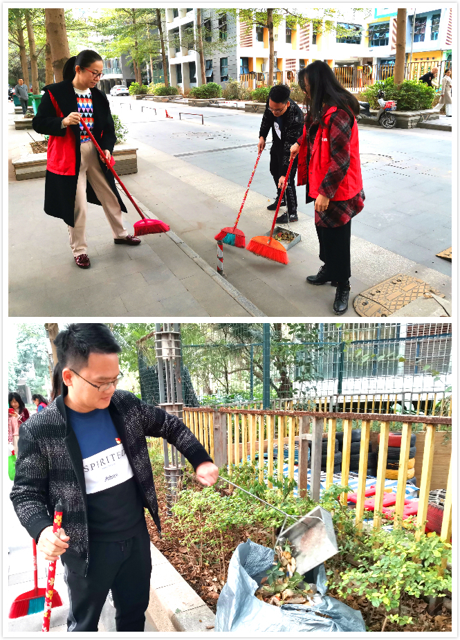 活動(dòng)中,每位黨員同志都熱情高漲,不怕累、不怕臟,擼起袖子,干勁十足,在開展宣傳的同時(shí),還用掃帚、簸箕等清掃工具對(duì)小區(qū)公共地帶的衛(wèi)生死角進(jìn)行了細(xì)致打掃,清理路面雜物和綠化帶落葉,為社區(qū)營造良好的居住環(huán)境。大家分工明確,配合默契,積極發(fā)揮奉獻(xiàn)服務(wù)精神,用實(shí)際行動(dòng)為美化社區(qū)環(huán)境做出努力,為創(chuàng)造和諧穩(wěn)定的社區(qū)環(huán)境貢獻(xiàn)一份力量。