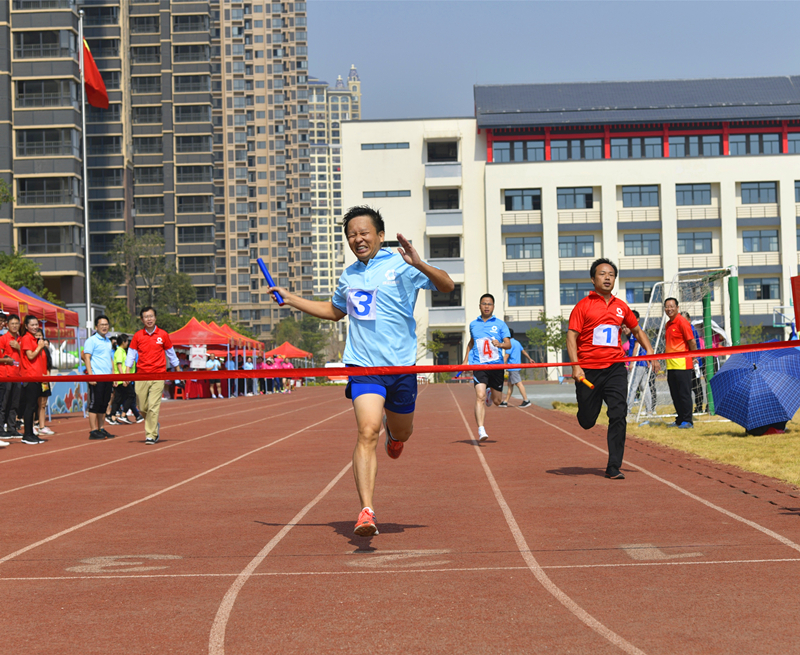 《向前沖!》(集團(tuán)辦公室 吳靄濤)圖片說(shuō)明:2019年職工運(yùn)動(dòng)會(huì)上,接力比賽隊(duì)員正在全力沖刺終點(diǎn)。