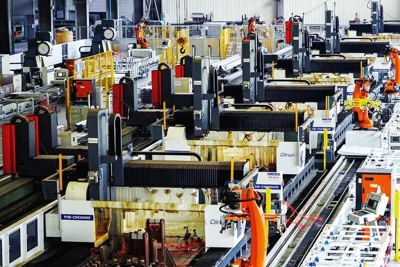 南南鋁業(yè)的自動化加工中心內(nèi),機器人正在加工鋁合金型材。    記者葉子榕攝