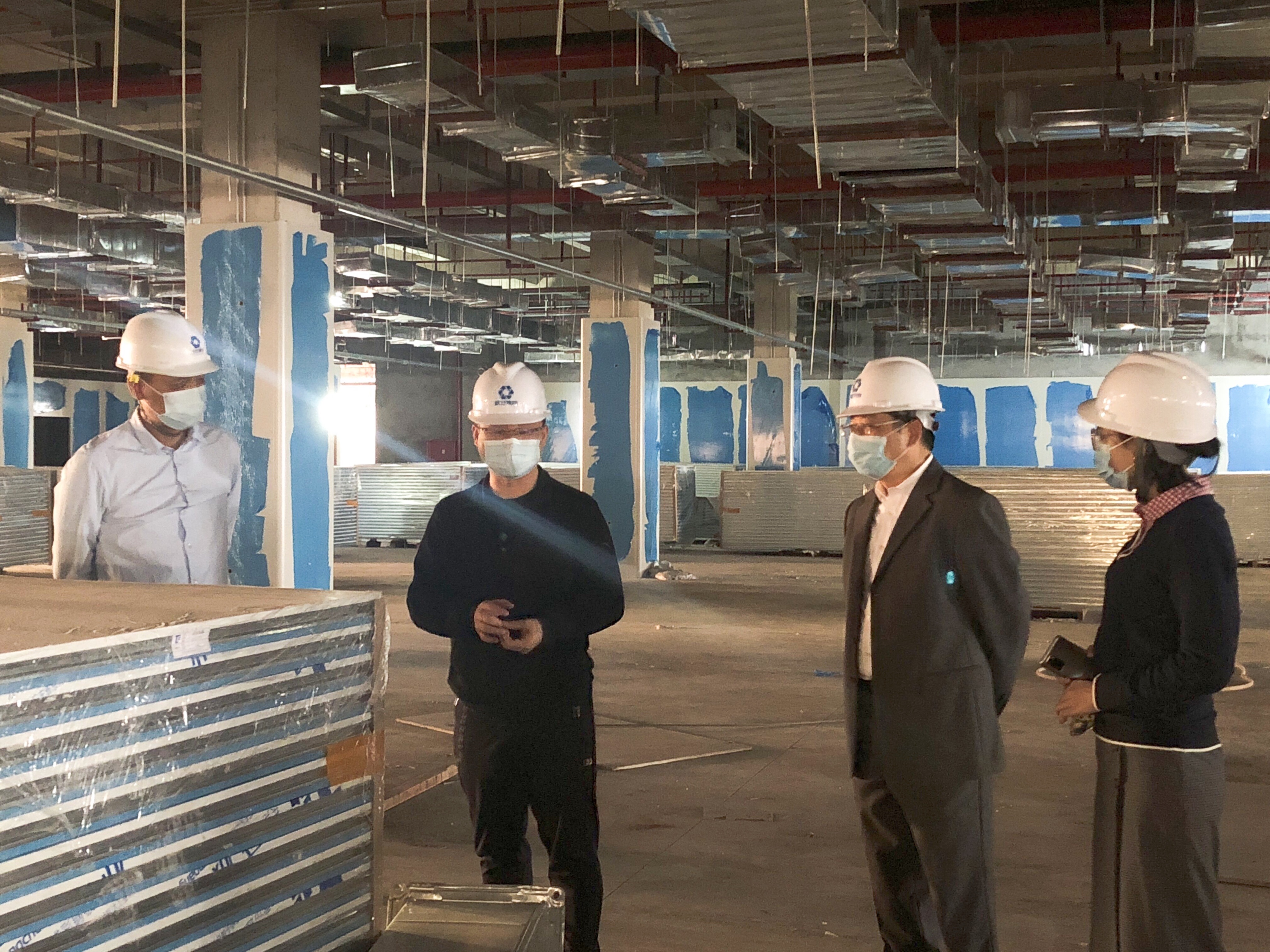 綠港集團(tuán)黨委書記、董事長龔國強(qiáng),黨委委員、副總經(jīng)理陸羿冰到瑞聲三期裝修項(xiàng)目檢查工程進(jìn)度
