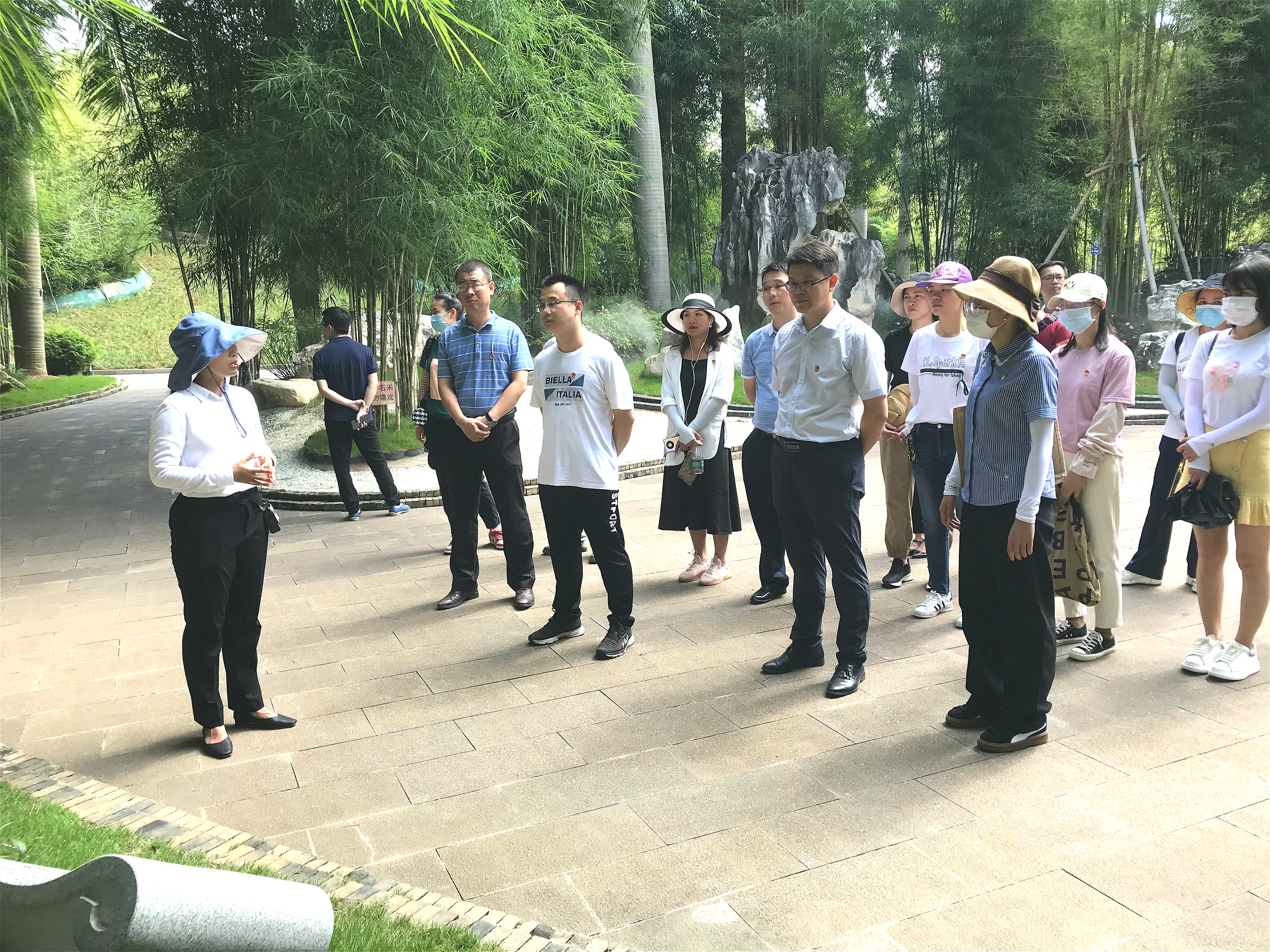 黨員們?cè)谇嘈闵搅幕黝}園(竹園)合影