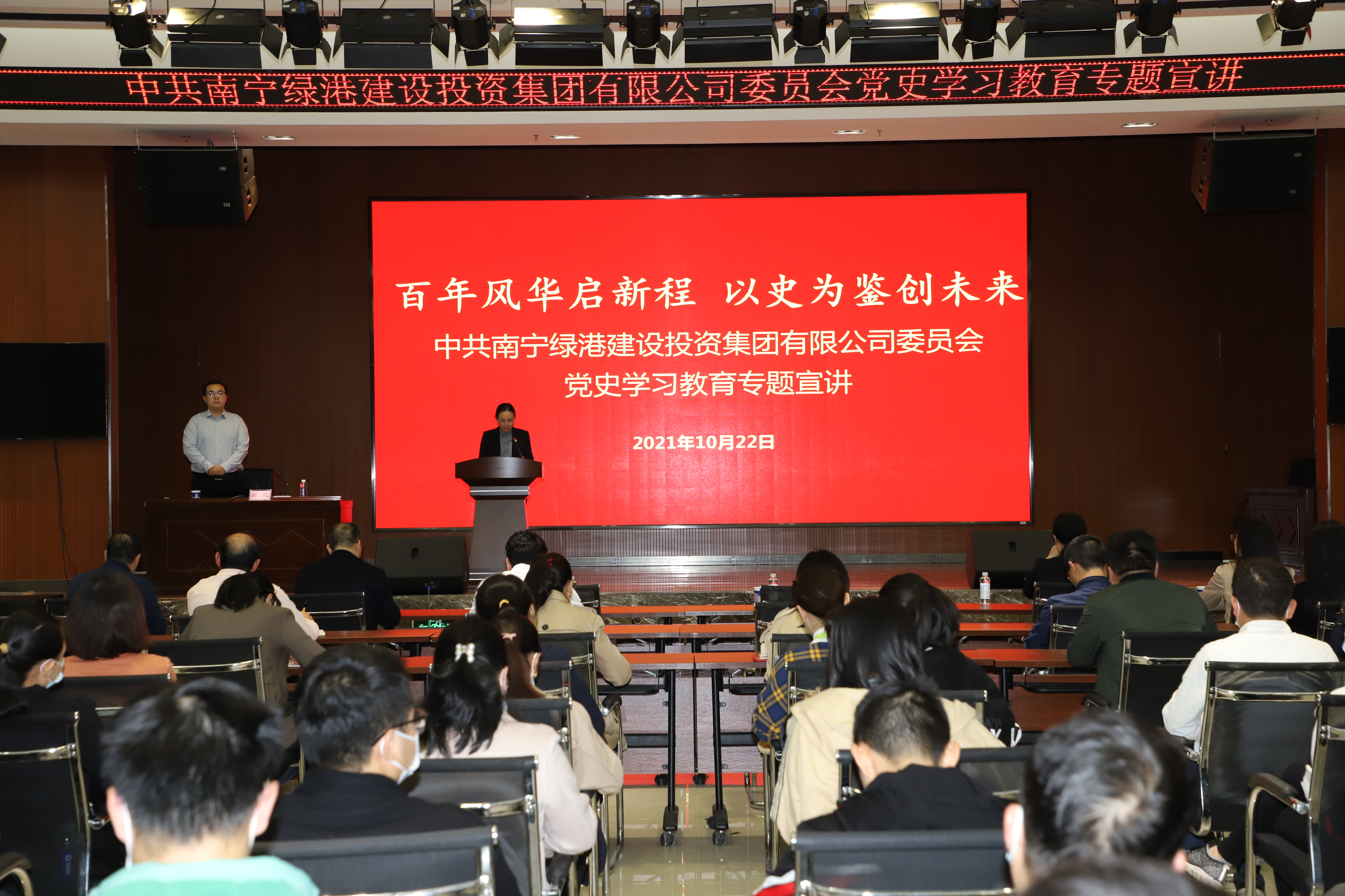 為持續(xù)推進(jìn)黨史學(xué)習(xí)教育走深走實(shí),讓廣大黨員干部更加深入理解習(xí)近平總書記在慶祝中國共產(chǎn)黨成立100周年大會上的重要精神,10月22日,綠港集團(tuán)黨委舉辦學(xué)習(xí)貫徹習(xí)近平總書記“七一”重要講話精神專題宣講會。此宣講會由集團(tuán)黨委委員、副總經(jīng)理、工會主席陸羿冰主持。集團(tuán)公司全體黨員、預(yù)備黨員、積極分子約150人參加宣講會。