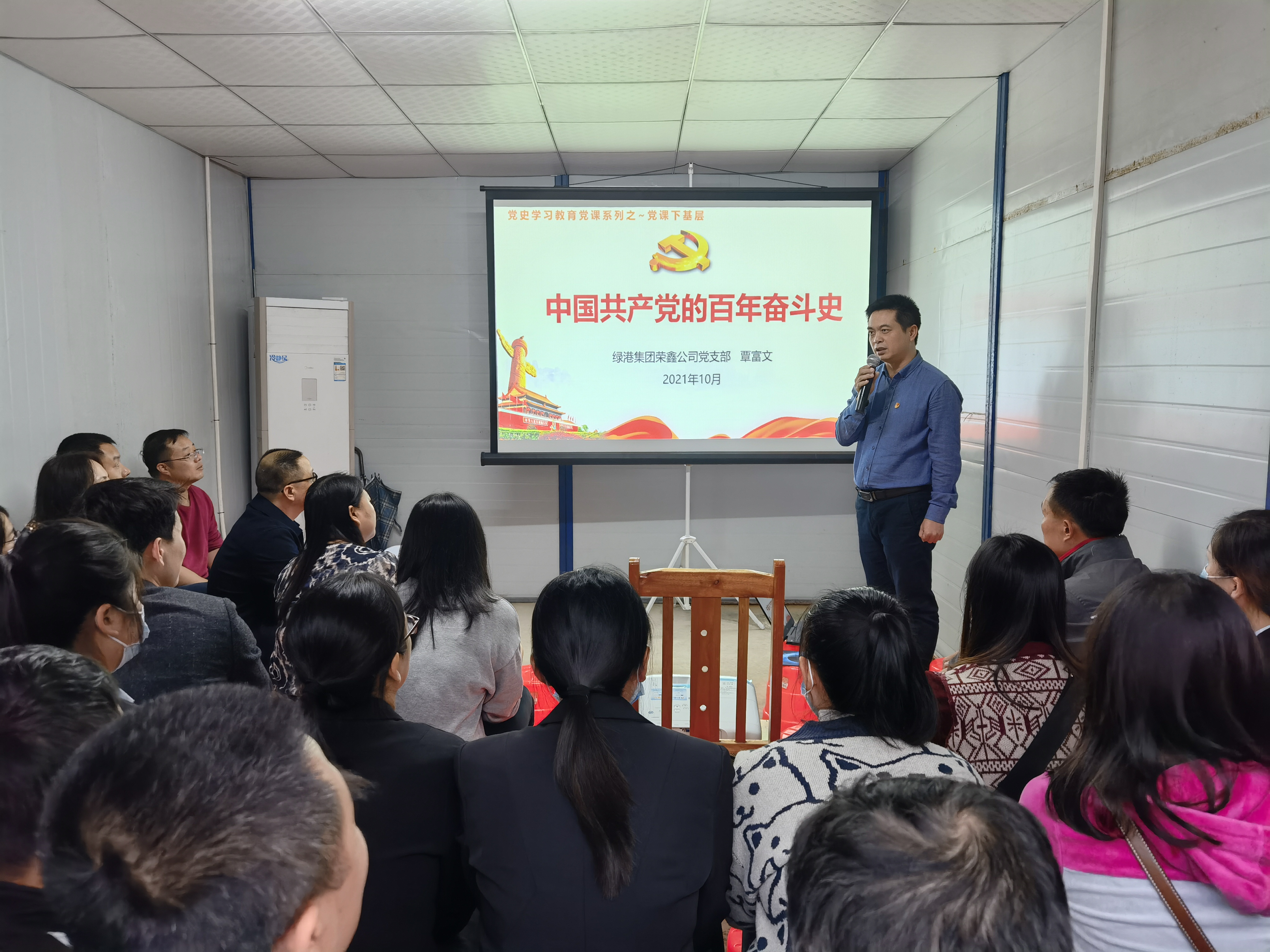 古有稻花香里說豐年,今有苗圃綠地講黨史。為持續(xù)深入開展黨史學(xué)習(xí)教育,讓黨史學(xué)習(xí)教育走深走實(shí),10月28日,榮鑫公司黨支部來到高嶺苗圃開展黨史學(xué)習(xí)教育“黨課下基層”活動(dòng),榮鑫公司黨支部委員、萬方公司副總經(jīng)理覃富文同志為榮鑫公司一線建設(shè)者、萬方公司一線客服等基層人員和榮鑫公司黨支部全體黨員帶來了題為《中國(guó)共產(chǎn)黨的百年奮斗史》的生動(dòng)黨史黨課,集團(tuán)黨委委員、紀(jì)委書記蘭赤壽也一起聆聽了這堂黨課。