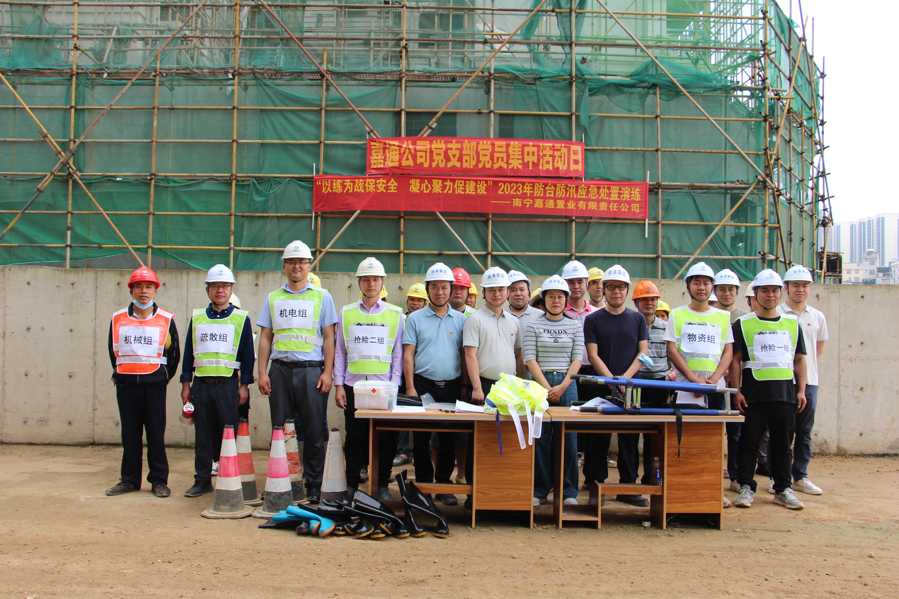 為進一步提升項目管理人員應對汛情的應急處置能力,提高員工防臺防汛的安全意識,保障項目現場的設備和人身財產安全,4月19日,嘉通公司聯合施工單位廣西建工第一建筑工程集團有限公司在綠港·尚尊一品項目現場開展“以練為戰(zhàn)保安全 凝心聚力促建設”2023年防臺防汛應急處置演練,全面筑牢安全生產防線。綠港集團安全監(jiān)督部、項目負責人、業(yè)主代表及一線施工人員約30人參加本次活動。集團黨委委員、副總經理黃麗琴到現場觀摩指導并作防臺防汛工作部署。嘉通公司黨支部書記、總經理何小勇在演練前致辭。
