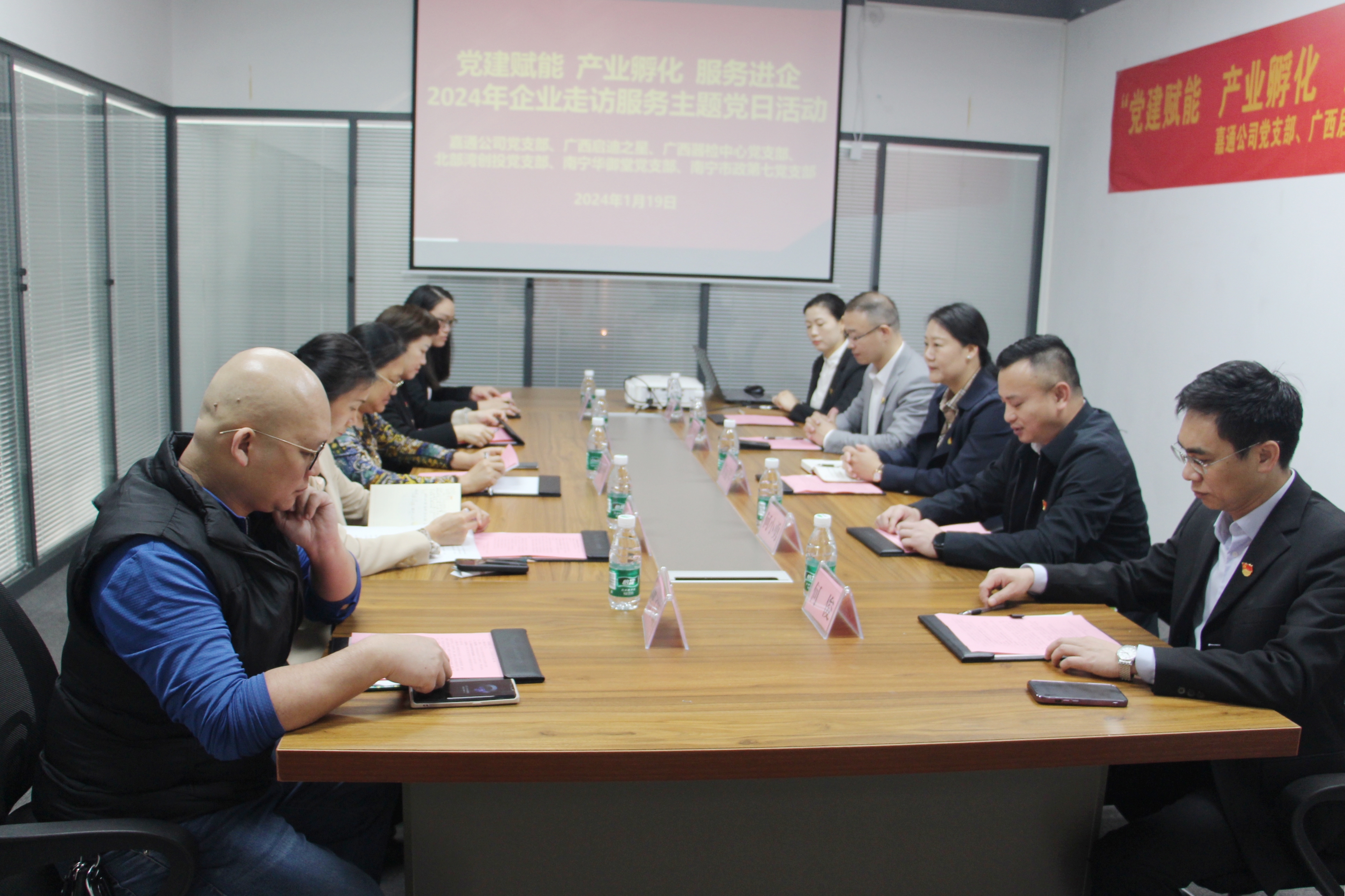 為深化黨建與業(yè)務(wù)融合,通過黨建引領(lǐng)提升企業(yè)服務(wù)質(zhì)量,發(fā)揮好產(chǎn)業(yè)經(jīng)濟(jì)穩(wěn)定器功能,以做強(qiáng)“鏈上黨建”推動(dòng)產(chǎn)業(yè)高質(zhì)量發(fā)展,1月19日,嘉通公司黨支部深入金凱工業(yè)園聯(lián)合廣西啟迪之星公司、廣西器檢中心黨支部、北部灣創(chuàng)投黨支部、南寧華御堂黨支部、南寧市政第七黨支部開展“黨建賦能 產(chǎn)業(yè)孵化 服務(wù)進(jìn)企”2024年“迎新春 寫春聯(lián) 送祝福”企業(yè)走訪服務(wù)主題黨日活動(dòng),嘉通公司黨支部黨員代表及職工代表參加本次活動(dòng)。