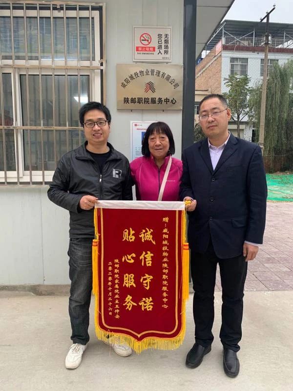 王阿姨是陜郵職院家屬院3號樓的業(yè)主。子女因為工作忙碌很少在身邊,購買水電、維修等瑣碎事,都是物業(yè)人員手把手教老人如何在手機上操作。平時還幫助老人解決一些日,嵤拢先藶榱吮磉_內(nèi)心的感激之情,送來了錦旗。