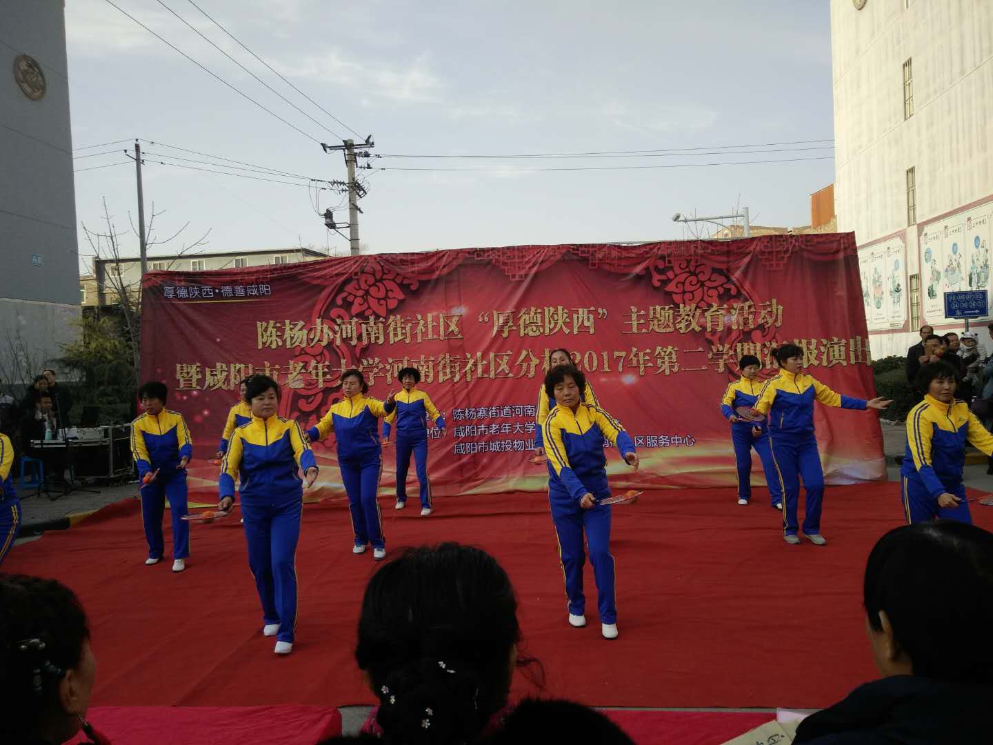 12月26日,城投物業(yè)聯(lián)合河南街社區(qū)開展“厚德陜西”主題教育活動暨咸陽市老年大學(xué)河南街社區(qū)分校2017年第二學(xué)期匯報演出活動在河南街小區(qū)舉行,來自河南街社區(qū)、市老年大學(xué)代表共計二百余人,為活動貢獻(xiàn)出了精彩紛呈的文藝表演。